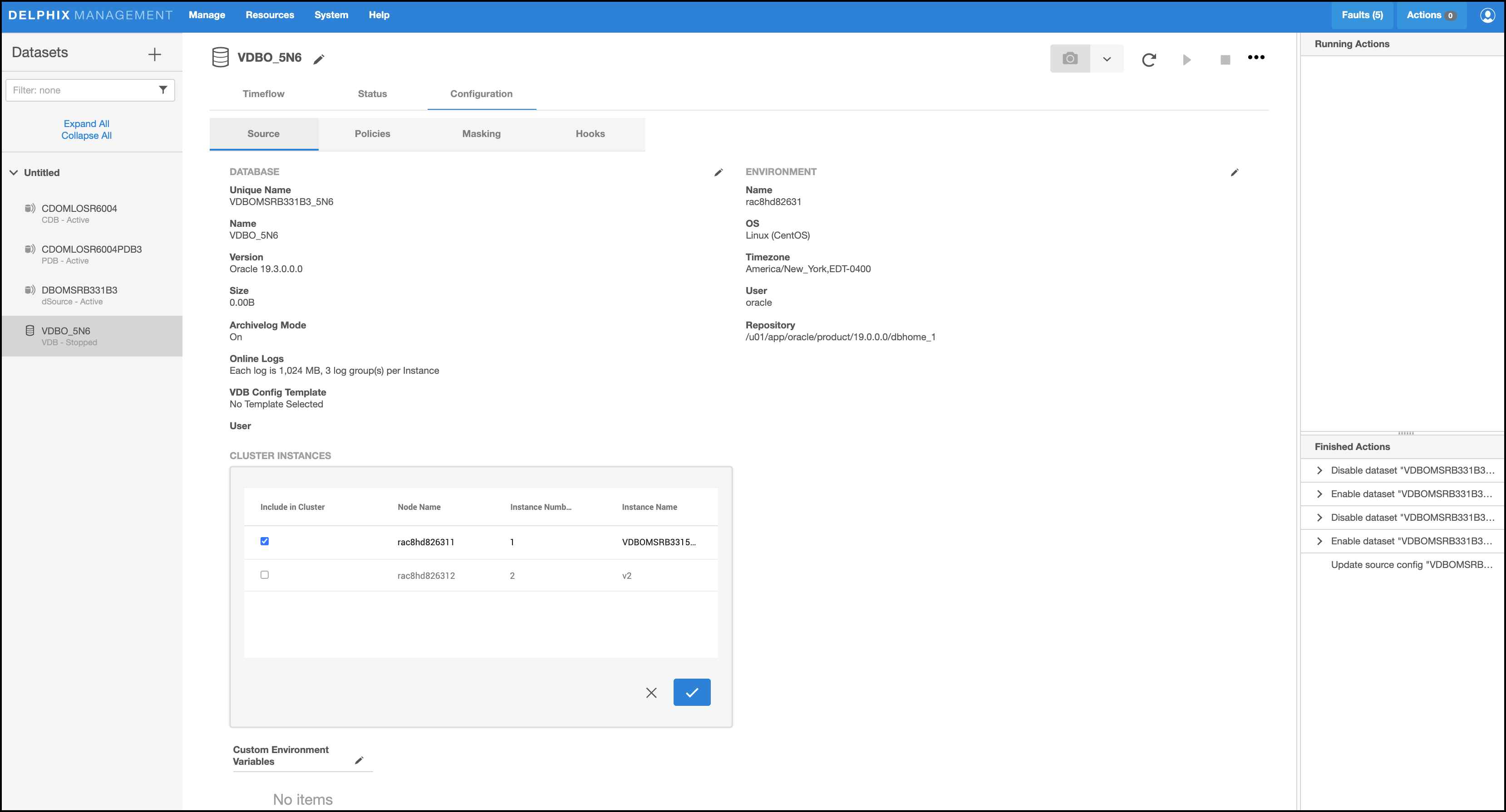 Provisioning a RAC VDB requires users to select which RAC node to be included for this VDB, as well as the instance number and instance name of each RAC node that runs the RAC VDB. At any time after the provision, there may be a need to downsize or increase the number of instances of the RAC VDB or reassign instance number and instance names to individual VDB RAC node.