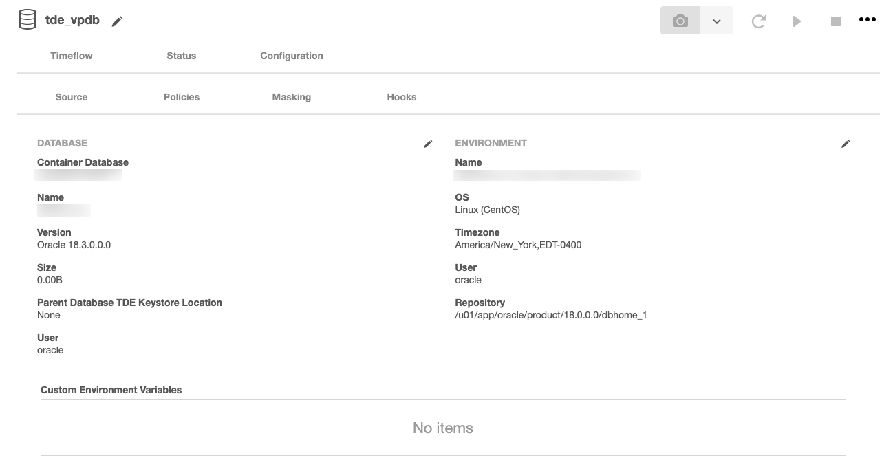 We are going to migrate this vPDB to the container database CDOMLOTGCAE8 located on the host tde-target18b. Currently, that container has the following configuration: