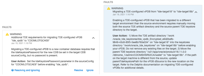 tde-target18b. The UI will report the following warnings during the migrate operation, which indicate the manual steps which need to be done: