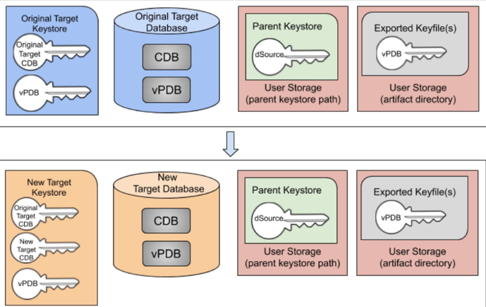 The diagram below illustrates the scenario of a migrated TDE-enabled vPDB.