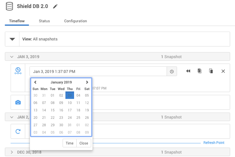 to provision from a point of time within a snapshot. You can select by date or time.