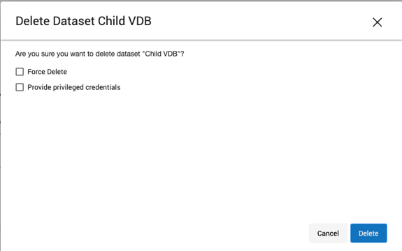 Deleting a VDB is an unrecoverable operation. Proceed only if you want to permanently destroy the unique data that was created in the VDB.