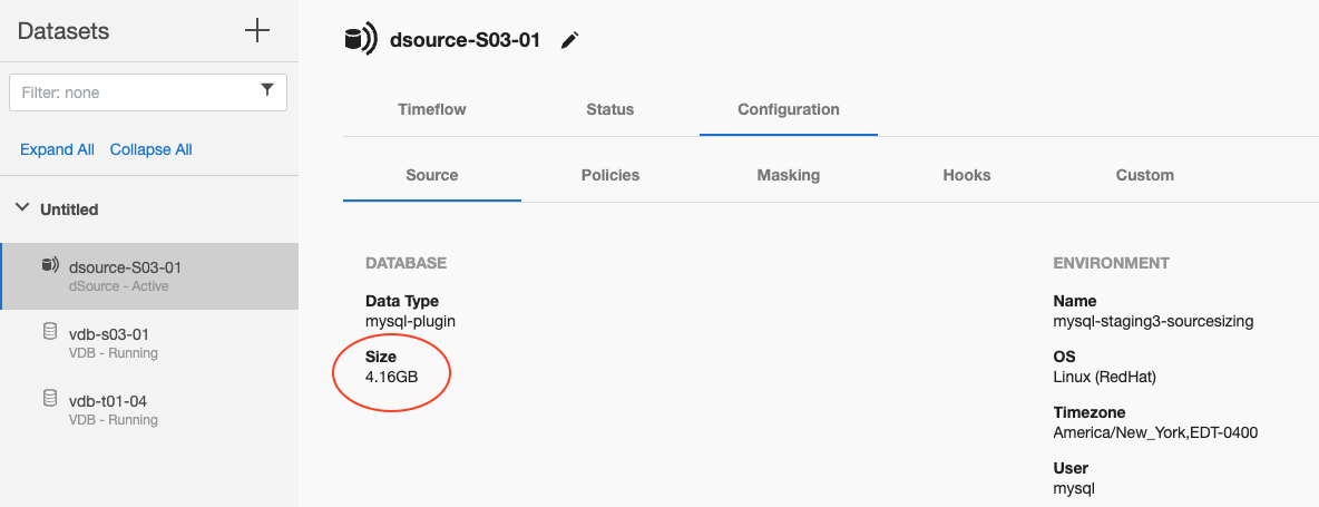 The source sizing feature aligns the data source experience with Delphix database standards that will improve your ingestion reporting experience on the per Terabytes pricing model. This feature enables you to calculate the dataset size based on the total allocated space on the mount point provided by the Delphix Engine.