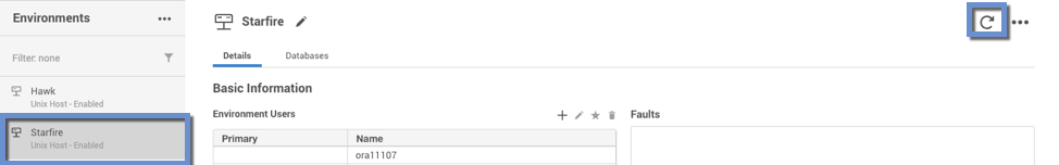 Click the refresh icon on the top right of the selected environment.