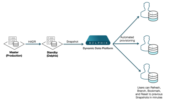 Allows the database instances to stay in sync with the source database, so end users can create or update their virtual databases as needed. The Delphix Engine snapshots the Staging server and the snapshots can be provisioned out to one or more target servers.