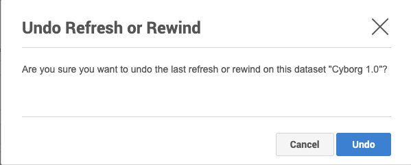 Confirm that you want to undo the last refresh or rewind for the selected VDB, by selecting Undo.