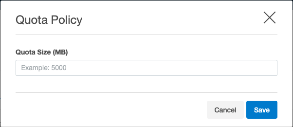 5. In the Quota Policy window enter the amount of storage space you want to allocate for a quota.