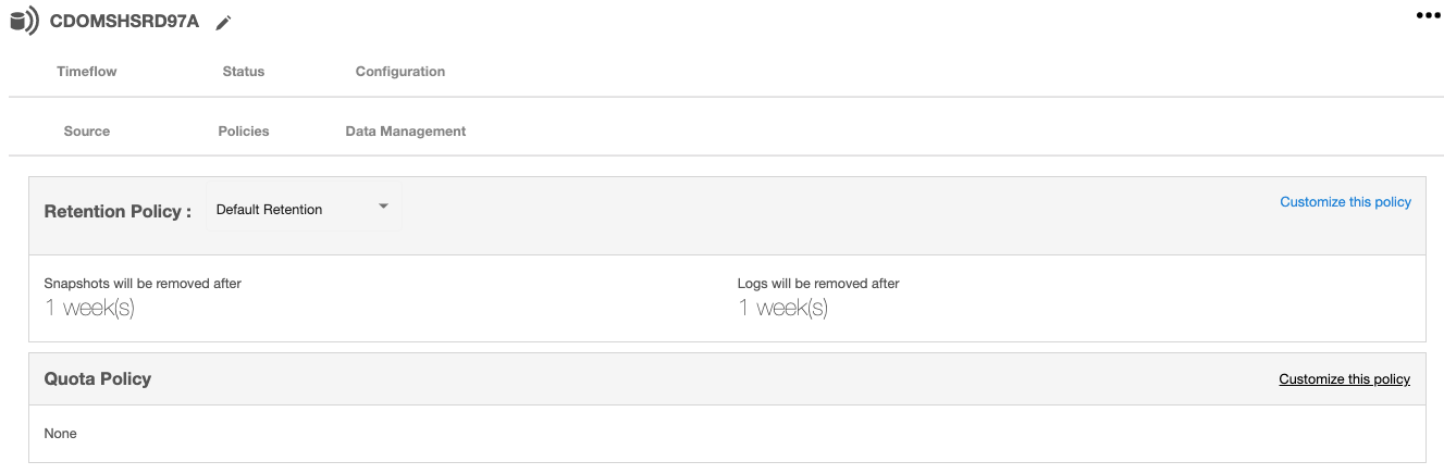 4. Select the Policies tab and from the Quota tile and select Customize this policy.