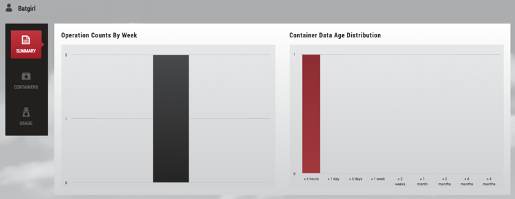 Container Age Distribution graph | Shows the average time since a data operation was performed on all of the user's containers |