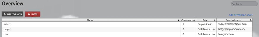Follow the same process when creating a new user or modifying an existing Delphix user. Delphix Self-Service users do not have access to the existing admin user interface, and they can only access the Data Container page for containers they own.