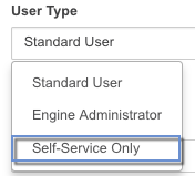 Click + to add a new user or to make an existing Delphix Engine user a Delphix Self-Service user, select the user from the list.