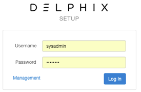 Login to the Delphix Setup application using the sysadmin username and password.