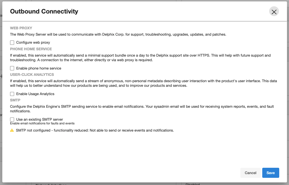 This procedure will disable user-click analytics on both the Delphix Engine and Delphix Self-Service.