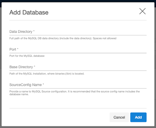 Follow these steps to add a database (Source Config), which defines the configuration of the staging database instance, to a staging Environment’s Dataset Home: