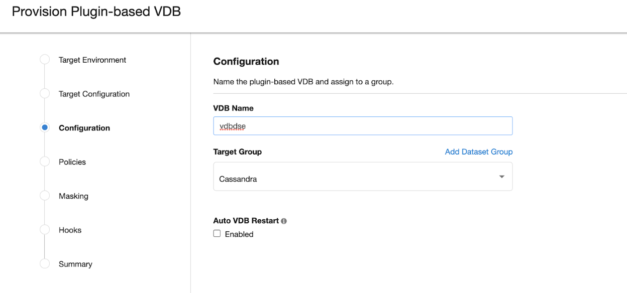 This topic describes how to provision a virtual database (VDB) from a Cassandra dSource using Cassandra plugin.