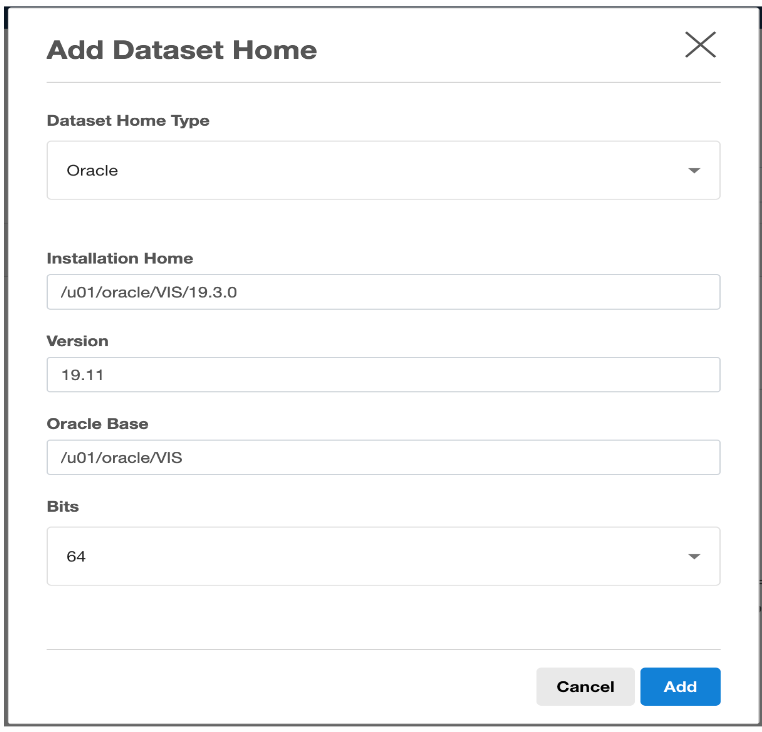 7. Select Oracle as your Dataset Home Type.