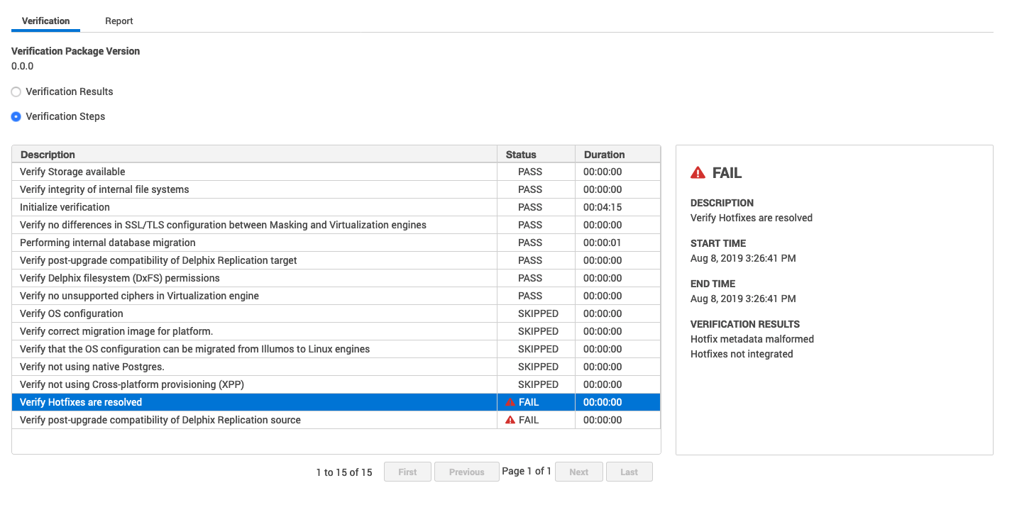 1. Verification steps allow you to view a complete list of verification actions, status, and durations.