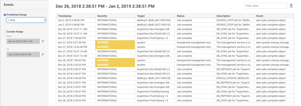 The event log interface has been improved to provide filtering, sorting, and exporting.