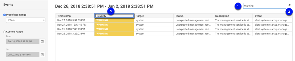 Enter filter text to reduce the results to only those rows matching the text entered. In the example above, we are filtering for “warning.”