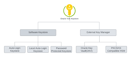 The key management capabilities within the Oracle database encompass support for various options, including software keystores, Oracle Key Vault (OKV), and other devices or key management applications compatible with the PKCS#11 standard. This diverse range of key management solutions provides you with the flexibility and choice to tailor your TDE implementations according to your security and operational requirements.