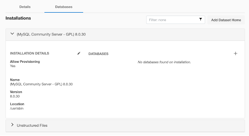 After successfully adding the environment, you should be able to view the newly added environment listed under the Environments tab. Discovery should occur automatically to identify and present Dataset Homes. If Dataset Homes do not appear, click the Refresh icon.