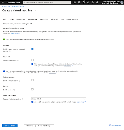 Ensure the system-assigned Managed Identity is enabled when creating your virtual machine.