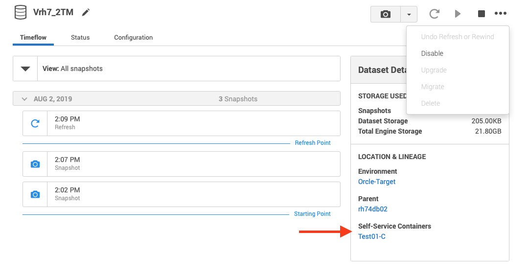 As shown below if a VDB is associated with a Self-Service container, the delete option will not show.