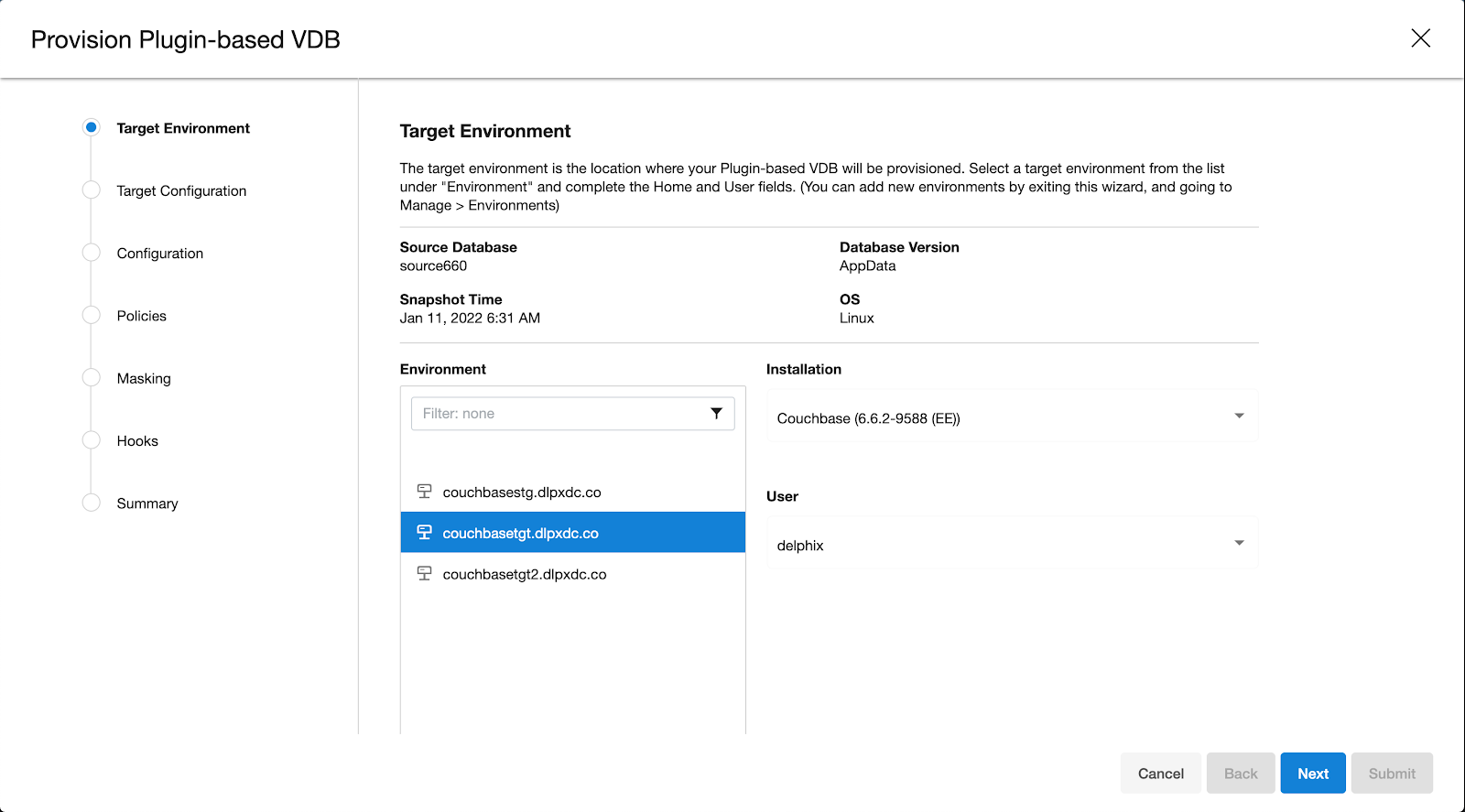 Delphix Environment Name: Select an additional node environment from drop-down menu