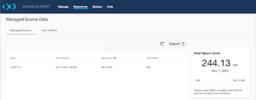 The source sizing feature enables you to visualize the dSource size based on the total allocated space on the mount point provided by the Delphix Continuous Data Engine for the dSource.