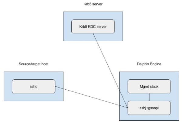 The management stack uses sshj+gssapi to pass already-generated Kerberos tickets to the Kerberized sshd on the source/target side if prompted to do so by the end-user passing a Kerberized environment user to existing wrapper functions.