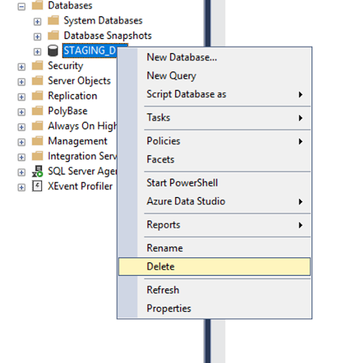 Once the operation completes, verify the staging database exists on SQL server instance.
