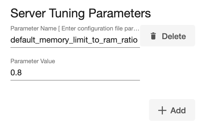 Server Tuning Parameters: Custom tuning parameters that are optional to the customer and are used to configure the instance.