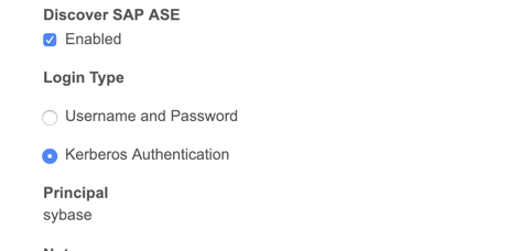 If Discover SAP ASE is enabled, ASE DB Kerberos authentication will be available, select Kerberos Authentication.
