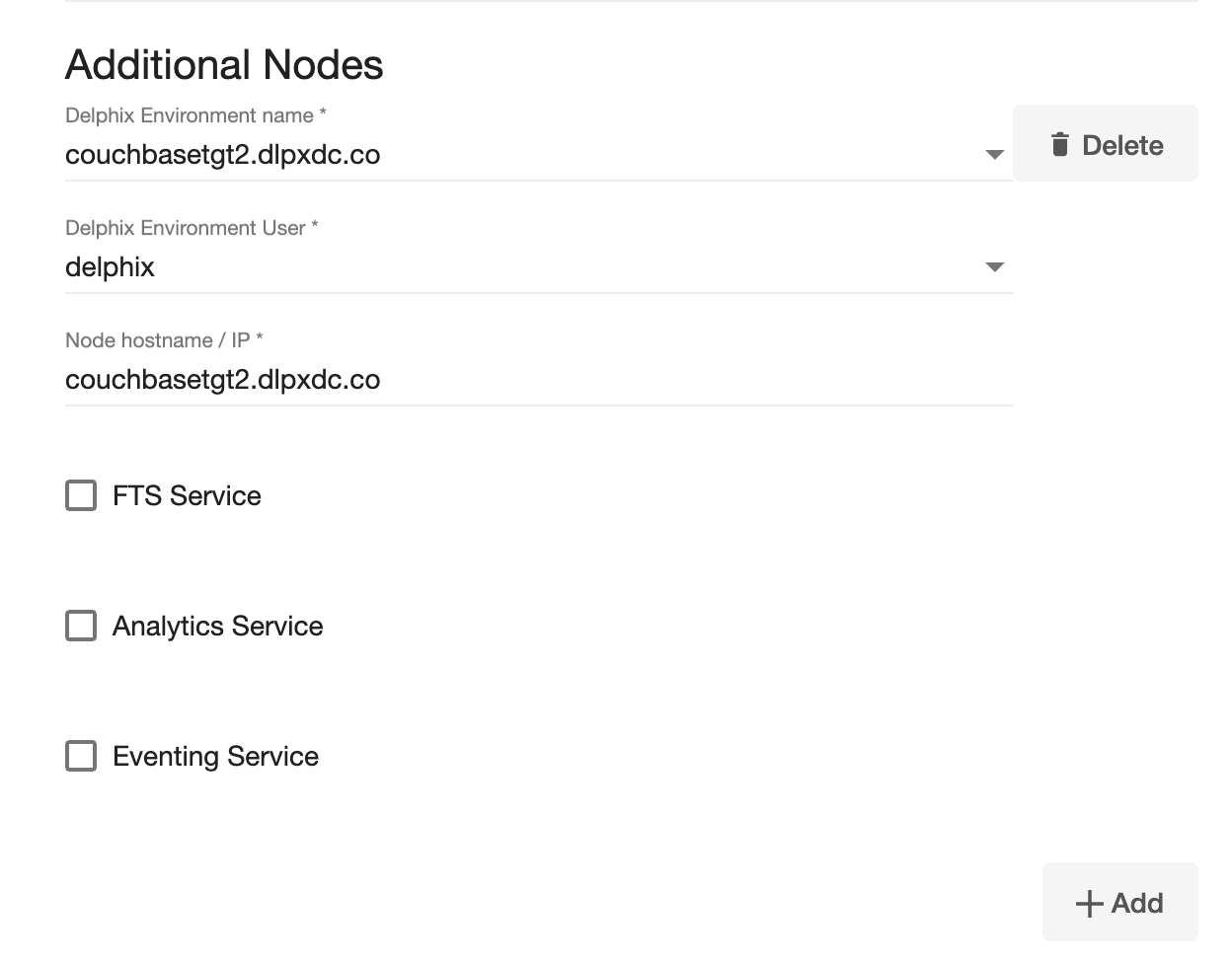 Delphix Environment Name: Select an additional node environment from drop-down menu