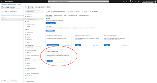 Navigate to the virtual machine and click on Identity and then Azure role assignments. After creation, assign the newly created role to the virtual machine for the necessary permissions.