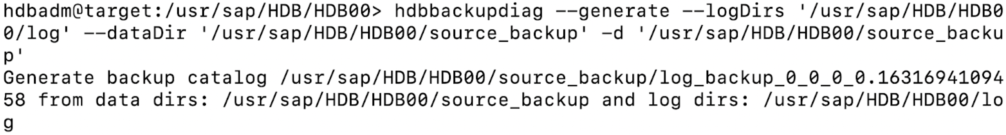 Create a backup catalog. This is used by HANA to determine whether recovery is possible and which backups are to be used to recover the database.