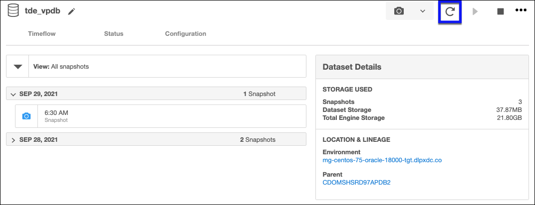 Note: Although the VDB no longer contains the previous contents, the previous snapshots and timeflow still remain in the Delphix Continuous Data engine and are accessible through the Command Line Interface (CLI).