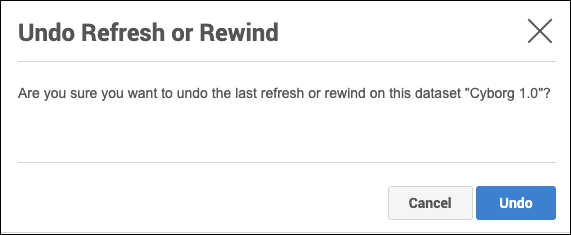 Confirm that you want to undo the last refresh or rewind for the selected VDB, by selecting Undo.